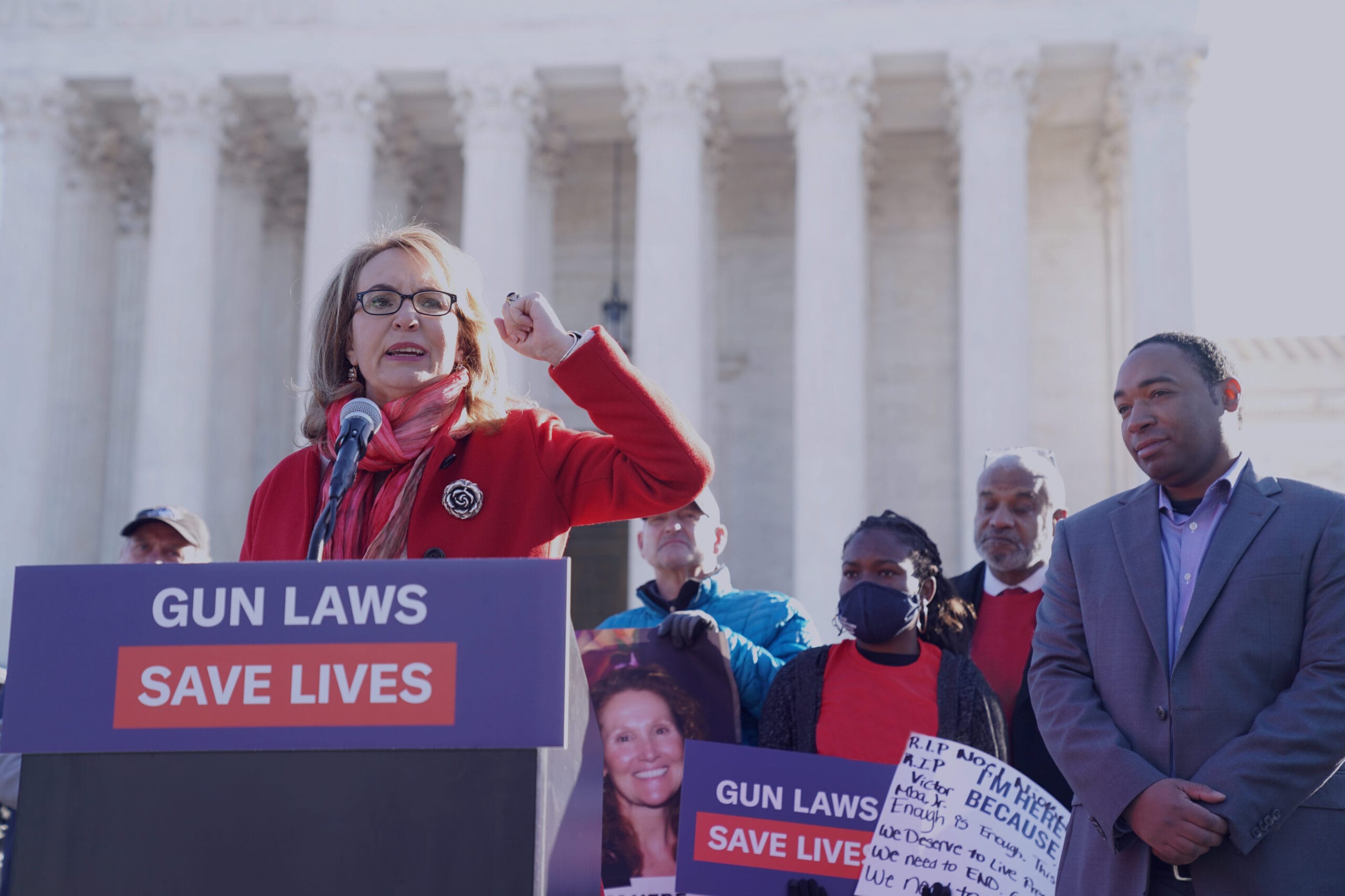 After the Supreme Court agreed to hear a Second Amendment case challenging a New York law, we coordinated with the New York solicitor general to draft our amicus brief in support of the law. On the day of the oral argument, we organized a demonstration outside the Court, featuring Gabby Giffords and other gun violence survivors.