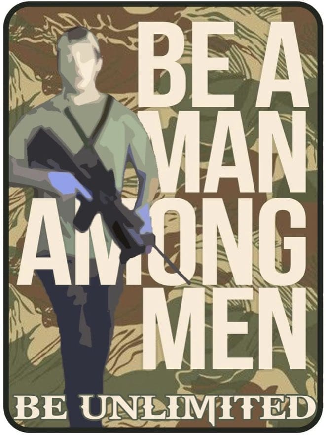 As I discovered, Big Daddy Unlimited’s post contained another, yet more sinister meaning. I would have missed it if I had not recalled seeing someone wearing a Make Zimbabwe Rhodesia Again ball cap at the 2018 SHOT Show. A friend then reminded me of the Facebook profile image of the mass murderer of nine Black parishioners in a South Carolina church, in which he is seen wearing a jacket decorated with a Rhodesian flag—iconography much celebrated by U.S. white supremacists. Variations of this image from a famous Rhodesian-army recruiting poster crop up across all the main social-media platforms.
