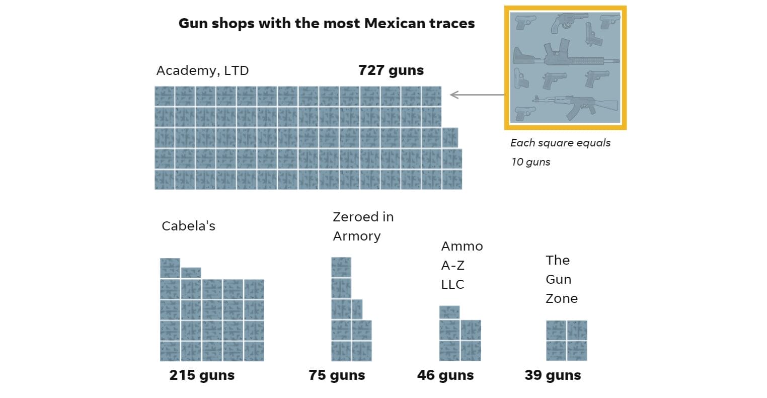 USA Today released a major story today revealing the US gun shops and smugglers responsible for nearly 80,000 firearms illegally trafficked into Mexico.