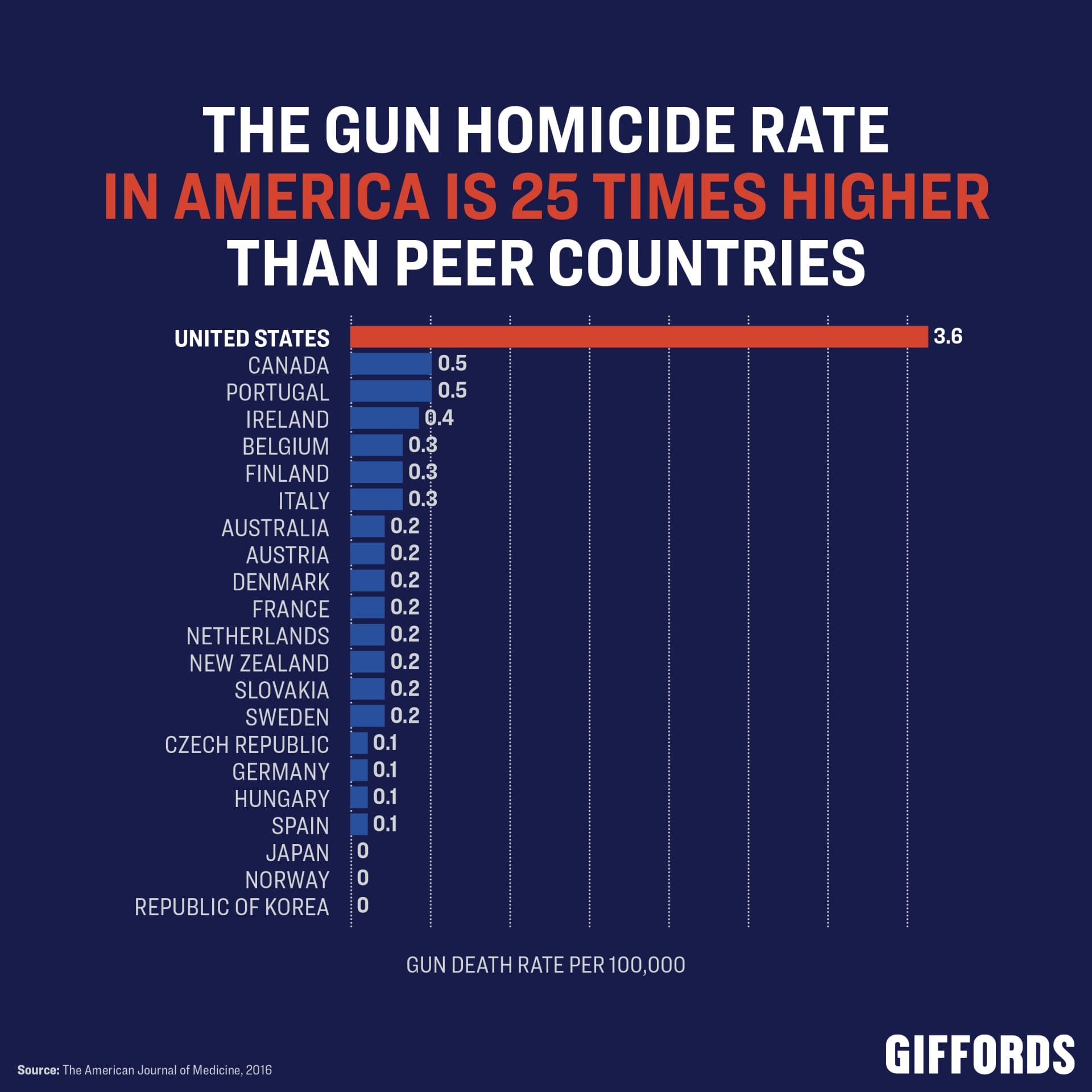 3. Americans are 25 times more likely to die from a gun homicide than people in other peer countries.