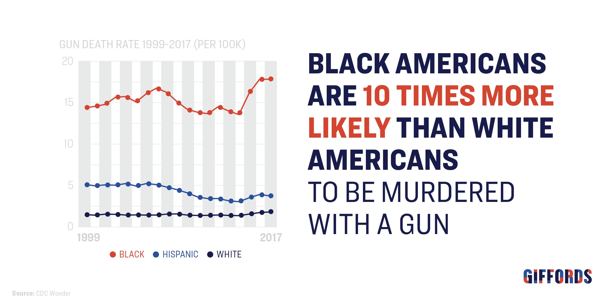 4. Black Americans are 10 times more likely than white Americans to die by gun homicide.