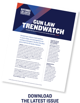 About Trendwatch: Distributed biweekly during the state legislative cycle, Gun Law Trendwatch rounds up and analyzes trends in state gun legislation, documents important victories, and monitors the gun lobby’s activity in legislatures across the United States.