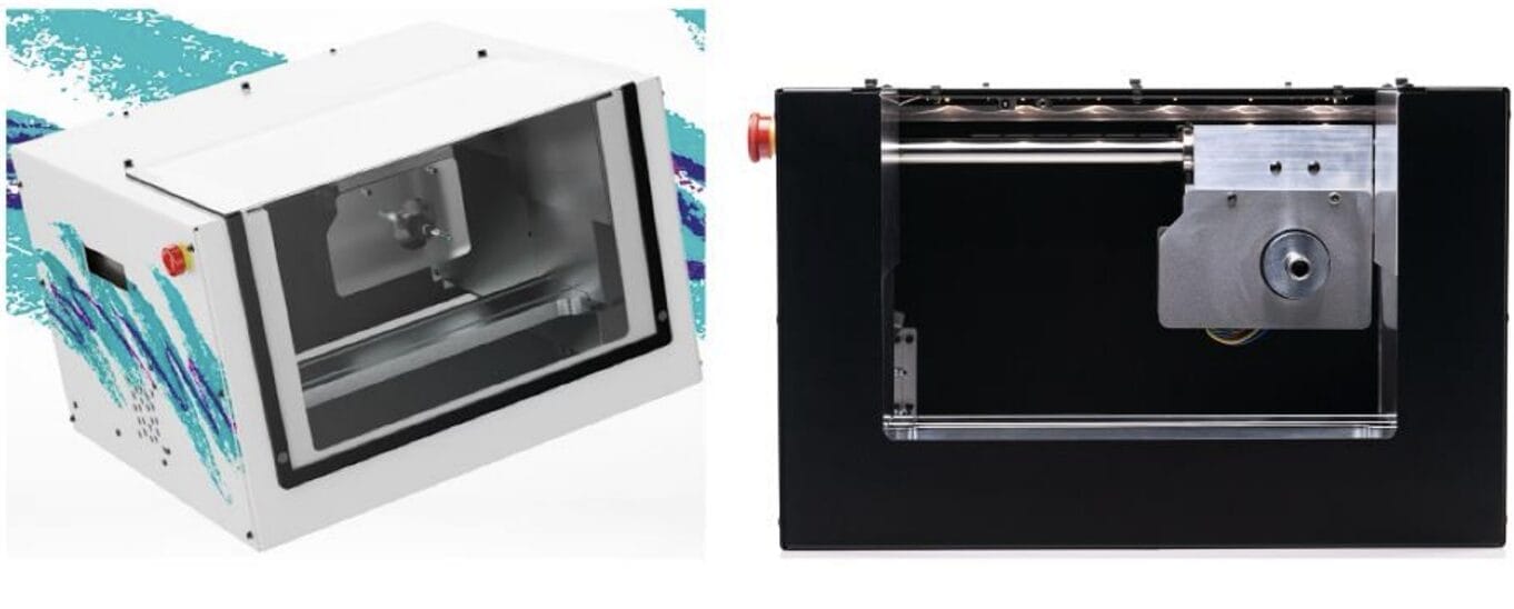 Side-by-side images of the Coast Runner machine (left) and the Ghost Gunner machine (right), as included in our complaint. Despite the new name and paint job, the machines are virtually identical—evidence of Defense Distributed’s attempt to evade California law by rebranding and reselling the same illegal firearm-making device.