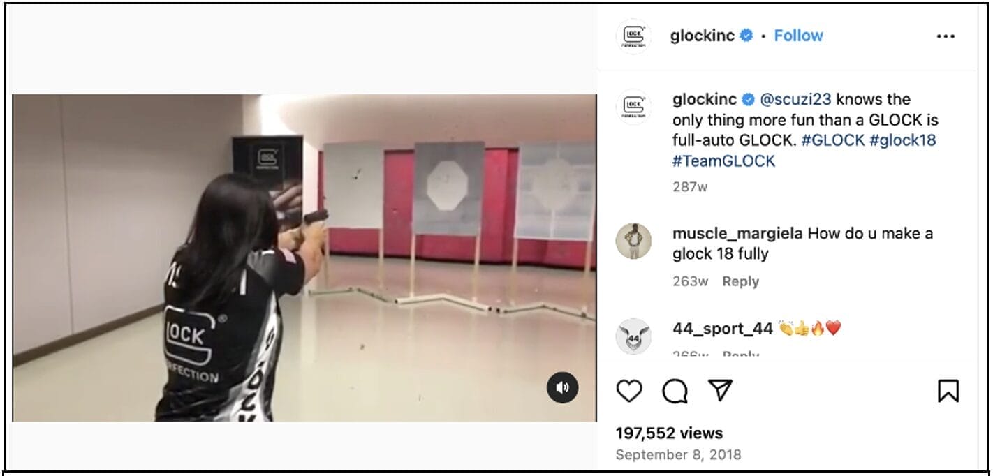 Not only has Glock failed to act in order to deter civilians from easily modifying their guns into fully automatic machine guns, but we also allege that Glock has actively promoted and encouraged the conversion of their handguns on their very own website and social media pages—misleading consumers on the legality of modifying their handguns to fully automatic fire and putting lives at risk.