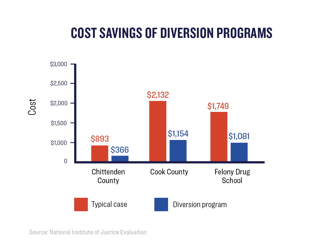 Moreover, in four of the five programs, participation led to “meaningful recidivism reductions,” including a reduced rate of rearrest over a two-year period.71 Additionally, all four programs for which a cost analysis was conducted demonstrated significant cost savings, with pre-filing programs producing the most substantial savings due to the early stage at which they interrupt the prosecution process.72