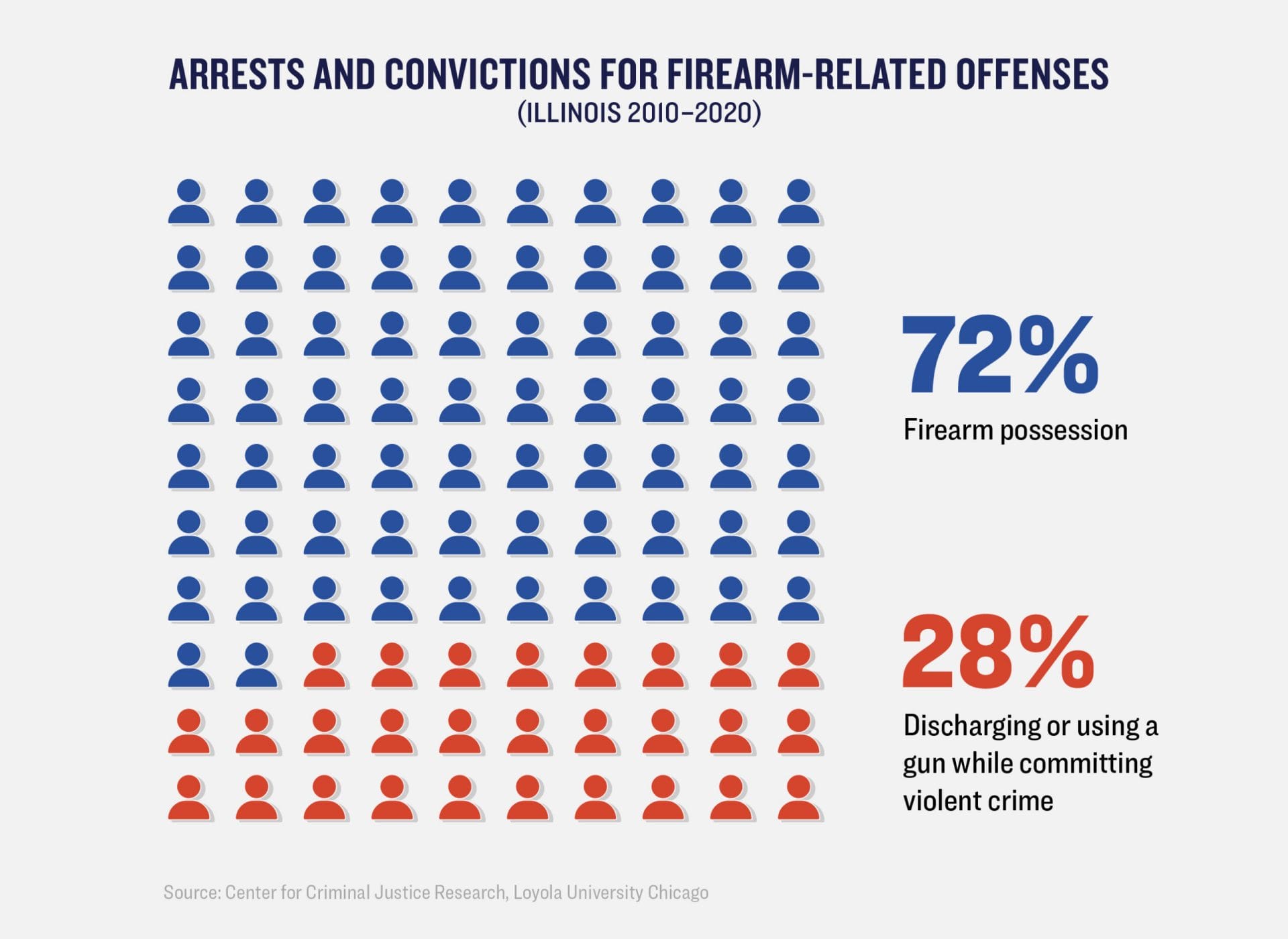 - David E. Olson, et al., “Sentences Imposed on Those Convicted of Felony Illegal Possession of a Firearm in Illinois: Examining the Characteristics and Trends in Sentences for Illegal Possession of a Firearm,” Center for Criminal Justice Research, Policy & Practice, Loyola University Chicago, July 2021, https://www.luc.edu/media/lucedu/ccj/pdfs/firearmpossessionsentencinginillinois.pdf.[↩]