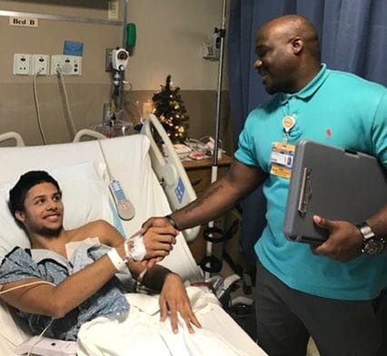 As he worked through alternative school, Taequan began to show great improvement in his behavior, school work, and self-esteem. Ultimately, he accomplished his goal of returning to high school and, thanks to a partnership between Bridging the Gap, the Mayor’s Youth Academy, and VCU Healthcare Career Pathway, Taequan started an internship program at VCU, where he worked in the patient transportation department and had the chance to shadow doctors, trauma surgeons, and violence prevention professionals.