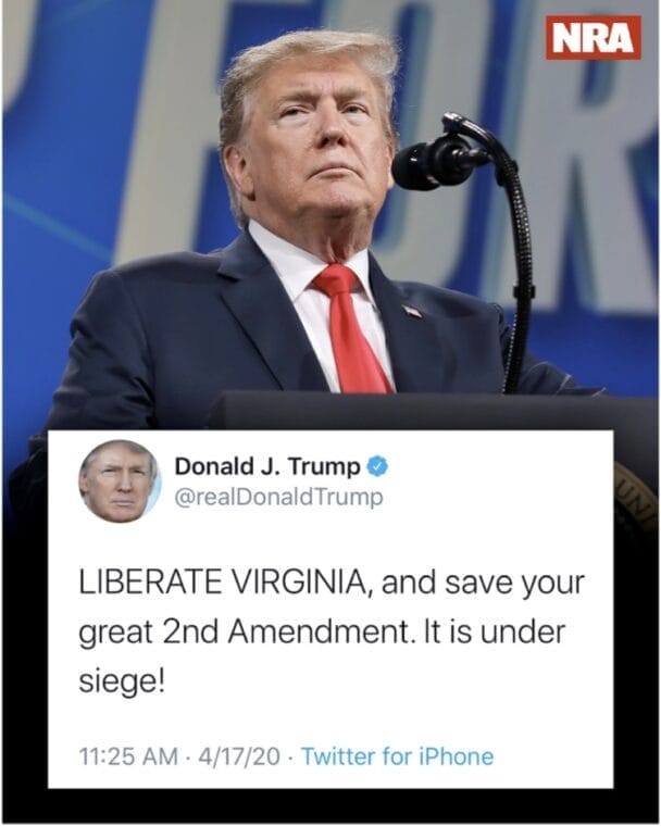 - “NRA Board Member Encouraged People to Attend Anti-Social Distancing Protest,” Mom’s Demand Action, April 30, 2020, https://momsdemandaction.org/nra-board-member-encouraged-people-to-attend-anti-social-distancing-protest-they-cant-arrest-all-of-us/.[↩]