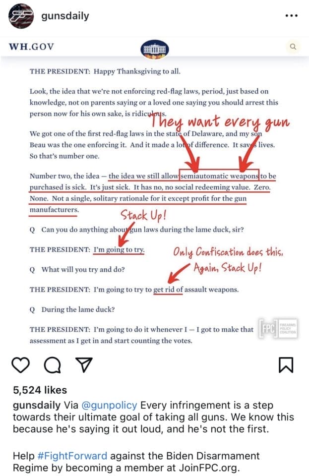 While these seemingly large followings parallel the followings of other businesses, through regular content and advertisements on these platforms, gun industry members engage directly with millions of consumers. Furthermore, private accounts and smaller firearm dealers contribute to the proliferation of pro-gun social media content.43 Unlike major manufacturers and distributors, these personal accounts often feature openly violent narratives, conspiracy theories, and other falsities that help fuel the fear-based consumerism cultivated by the gun lobby.