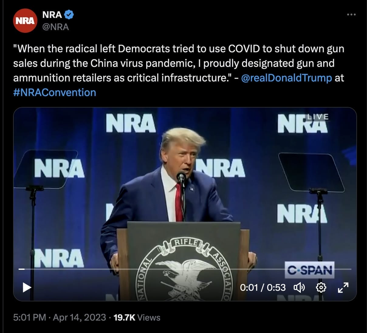 - NRA board member Dean Cain shared a video that called people protesting the killing of an unarmed Black man by police—Rayshard Brooks—“rioting thugs” and said, “You do not have a right to be offended by stereotypes that say Black people are inherently violent, when that is exactly the way you act when given the first opportunity.”