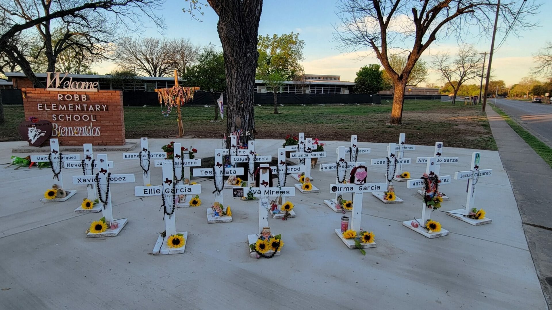 - John Krinjak, “Uvalde families who lost loved ones at Robb Elementary call for changes to gun laws,” Fox 7 Austin, October 5, 2022, https://www.fox7austin.com/news/uvalde-families-robb-elementary-changes-to-gun-laws.[↩]