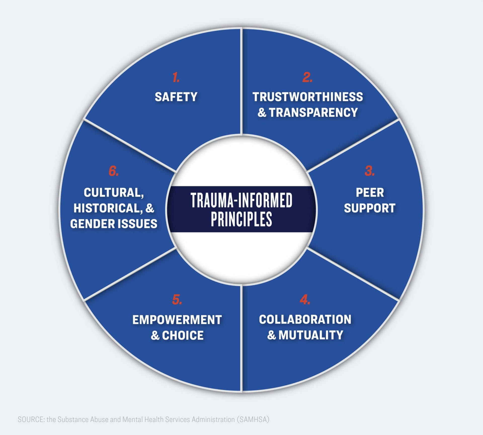 The Substance Abuse and Mental Health Services Administration (SAMHSA) has identified six trauma-informed principles as a best practice framework to support survivors of trauma. These practices emphasize a trauma survivor’s healing by creating strong, stable, and supportive relationships to build resilience and reduce their mental health symptoms.16 This approach also actively seeks to prevent practices that can retraumatize the survivors. This report will incorporate this framework and identify how effectively these six trauma-informed principles have been incorporated in Uvalde:17