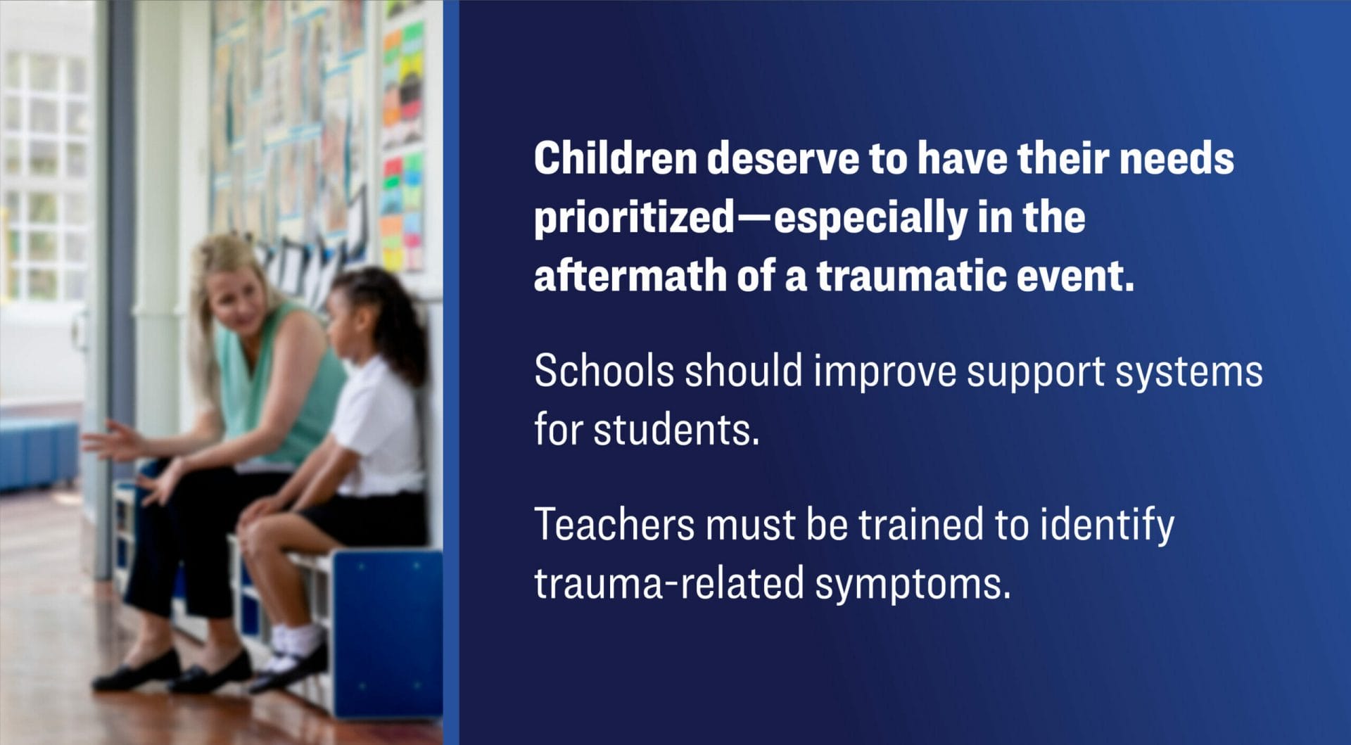 “We don’t just want to put a Band-Aid over it and leave,” said pediatric psychologist Jeffrey Shahidullah, Ph.D., who is an assistant professor at the University of Texas at Austin’s Dell Medical School, and who helped staff a walk-in clinic for Uvalde residents seeking on-demand mental health support in the days and weeks immediately following the shooting.19 “We need to create a trauma-informed community, because the situation doesn’t end once the traumatic event is over.”