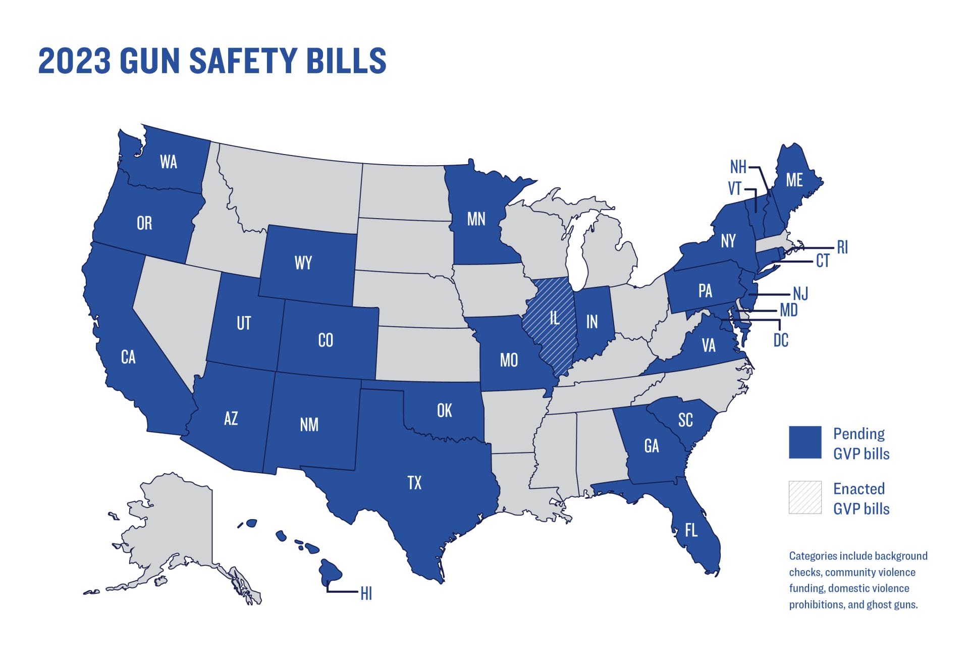 Lawmakers intent on protecting their constituents from gun violence began 2023 with the introduction of hundreds of gun violence prevention bills. Notably, bills to strengthen background check requirements, fund proven community violence intervention programs, improve domestic violence prohibitions, and regulate or prohibit ghost guns have been introduced in at least 28 states and the District of Columbia. Gun extremists nevertheless continue to push their dangerous agenda of more guns to address gun violence and have introduced several bills to bring guns in schools, allow permitless carry, allow people to shoot first and ask questions later, and make law enforcement officers liable for enforcing federal gun laws in over a dozen states. For nearly 30 years, we have helped states make our communities safer with evidence-based policies and by fighting the gun lobby. In 2023, we are stronger than ever.