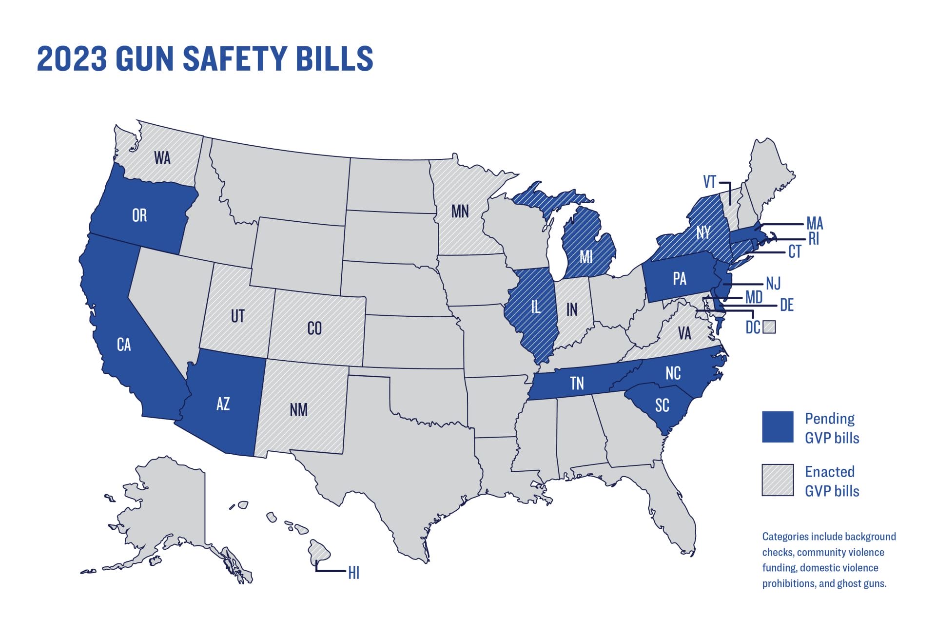 Lawmakers intent on protecting their constituents from gun violence began 2023 with the introduction of hundreds of gun violence prevention bills. Notably, bills to strengthen background check requirements, fund proven community violence intervention programs, improve domestic violence prohibitions, and regulate or prohibit ghost guns have been introduced in at least 38 states and the District of Columbia. Gun extremists nevertheless continue to push their dangerous agenda of more guns to address gun violence and have introduced several bills to bring guns in schools, allow permitless carry, allow people to shoot first and ask questions later, and make law enforcement officers liable for enforcing federal gun laws in over a dozen states. For nearly 30 years, we have helped states make our communities safer with evidence-based policies and by fighting the gun lobby. In 2023, we are stronger than ever.
