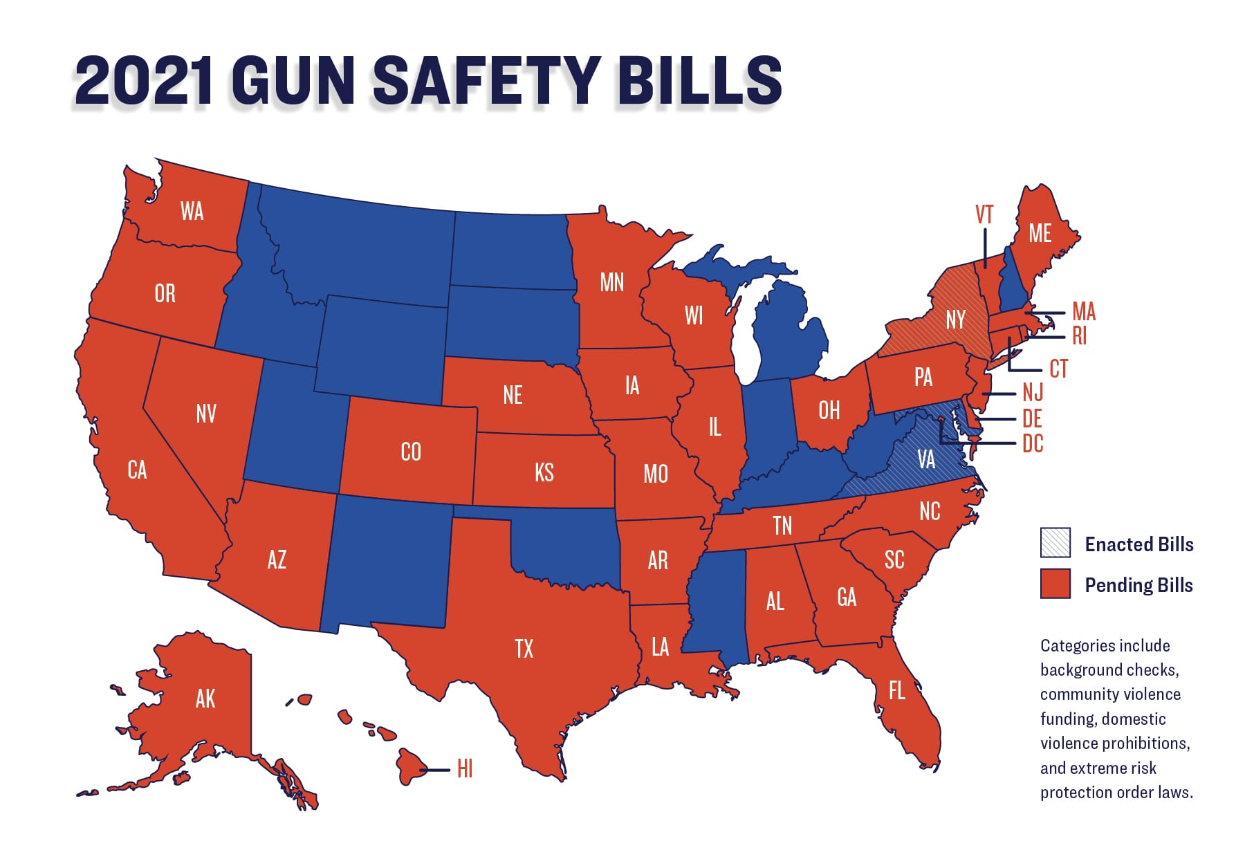 - BACKGROUND CHECKS: Legislation to strengthen or enact background checks is pending in at least 23 states.