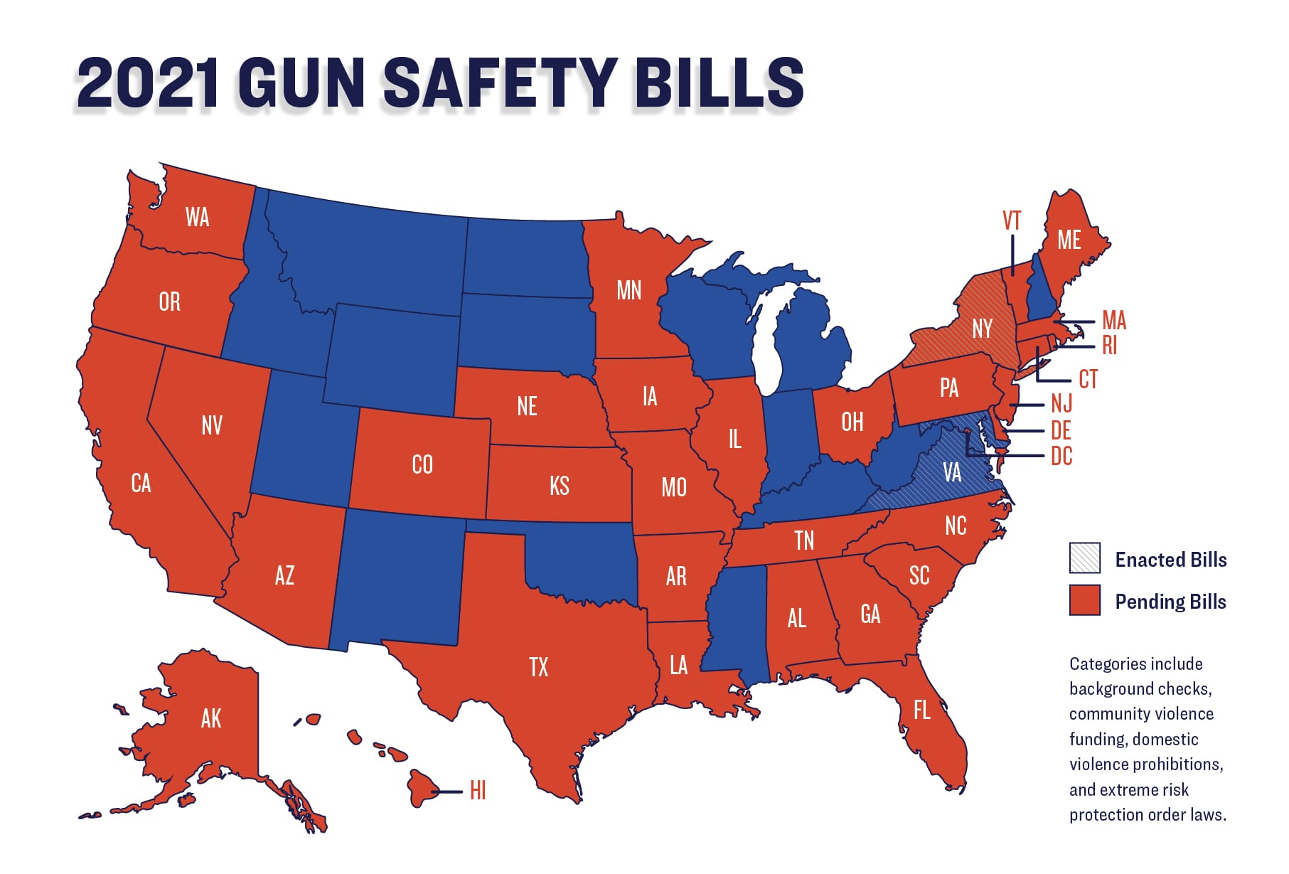 - BACKGROUND CHECKS: Legislation to strengthen or enact background checks is pending in at least 21 states.
