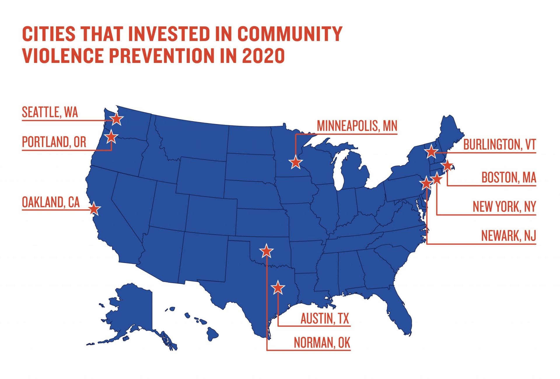 - Boston, Massachusetts, passed a budget that reinvests $12 million in public health initiatives aimed at addressing violence, trauma, racism, and poverty. Funds include a $2 million investment in community-based organizations and service providers engaged in violence intervention, youth programming, language and food access, and immigration assistance.