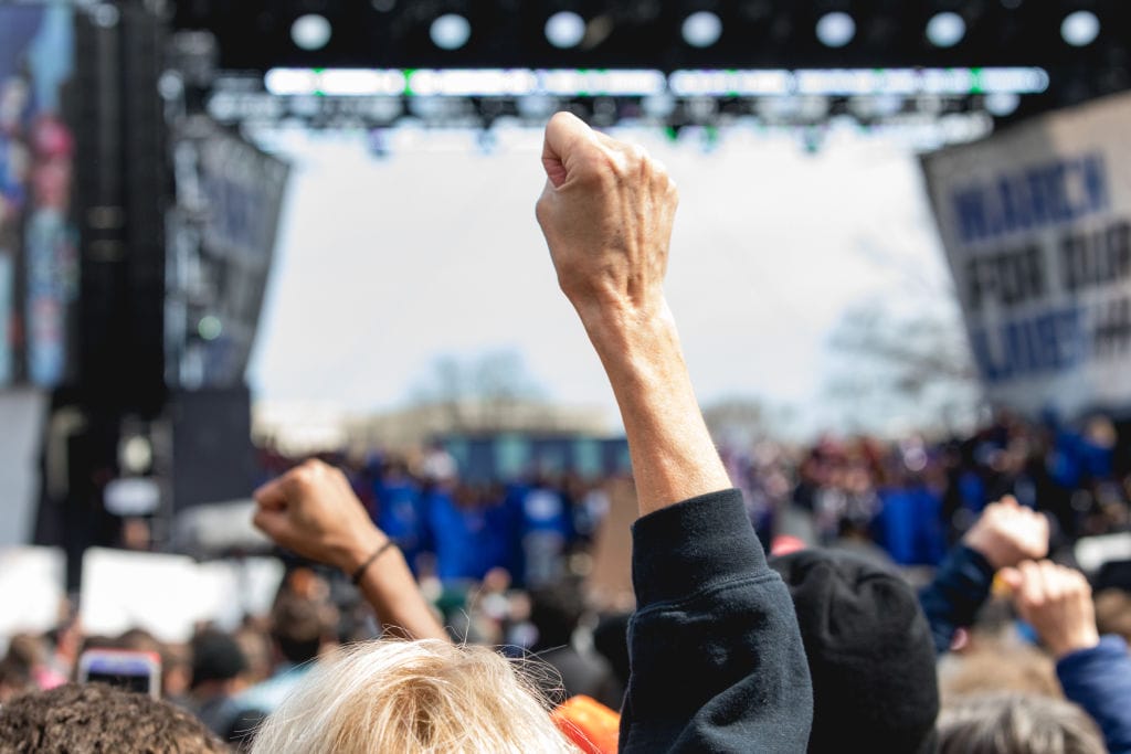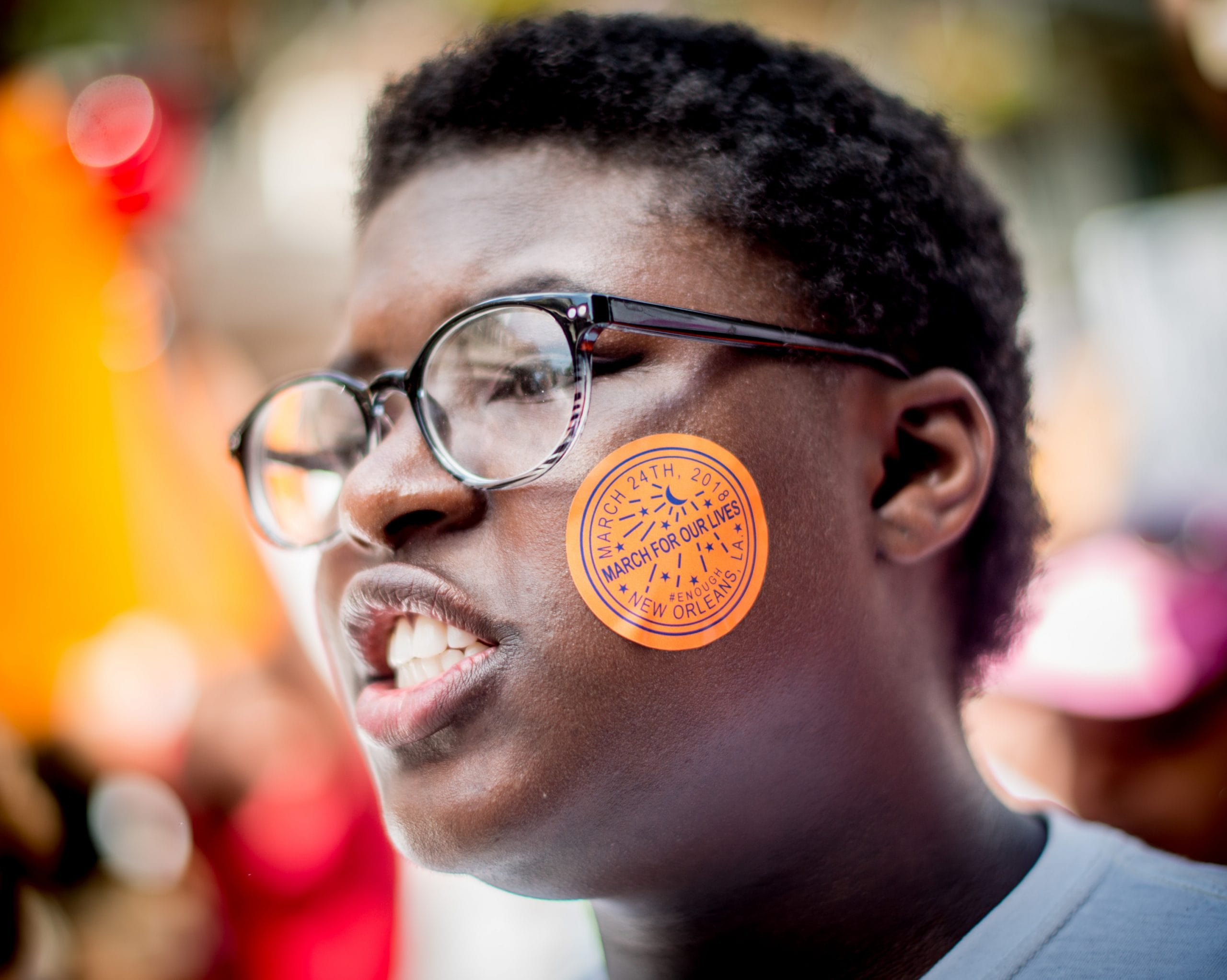 People take part in the March For Our Lives rally against gun violence in New Orleans, Louisiana on March 24, 2018. – Galvanized by a massacre at a Florida high school, hundreds of thousands of Americans are expected to take to the streets in cities across the United States on Saturday in the biggest protest for gun control in a generation. (Photo by Emily KASK / AFP) (Photo by EMILY KASK/AFP via Getty Images)