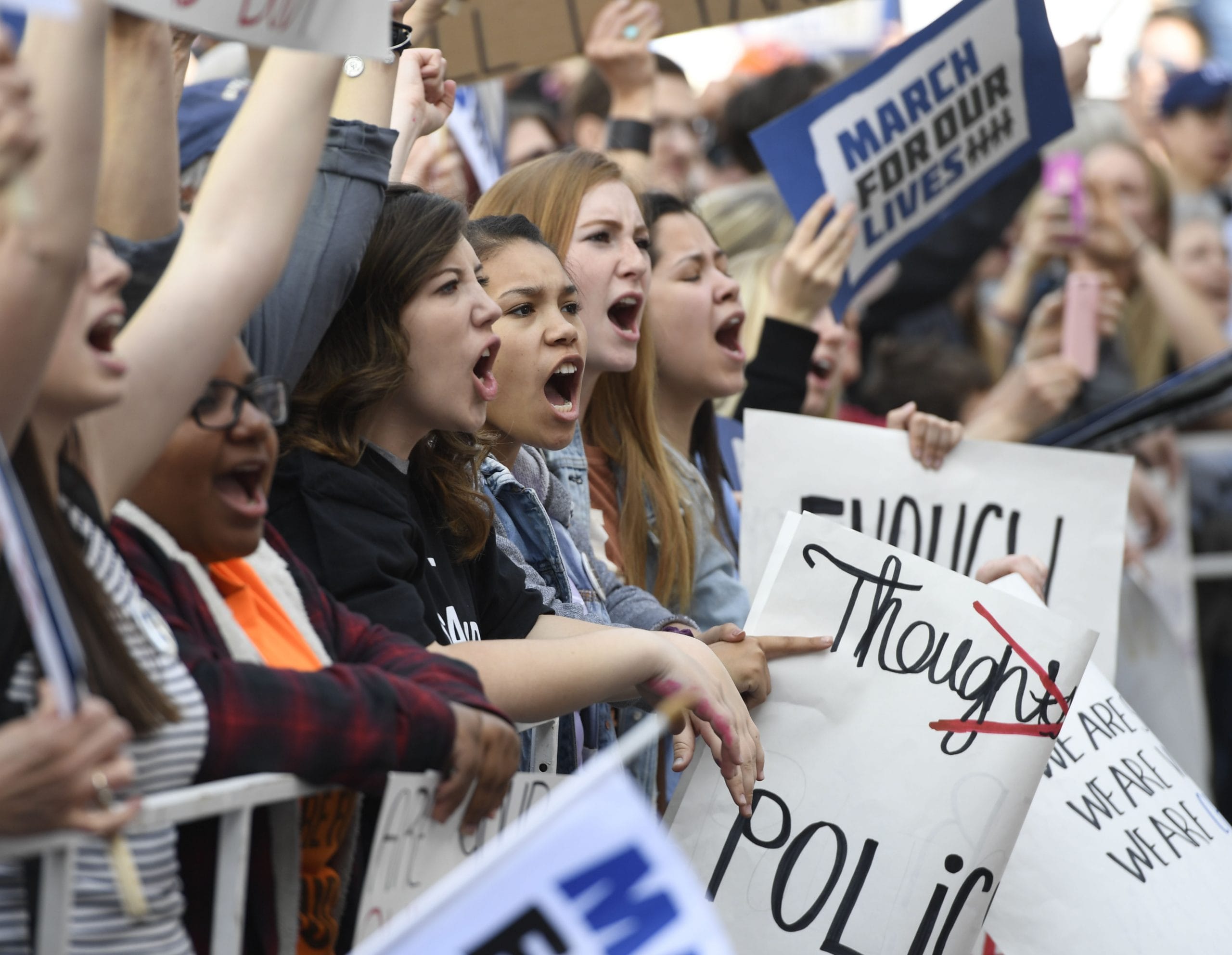 LOS ANGELES, CA – MARCH 24: Participants seen at March For Our Lives Los Angeles on March 24, 2018 in Los Angeles, California. (Photo by Chelsea Guglielmino/FilmMagic)