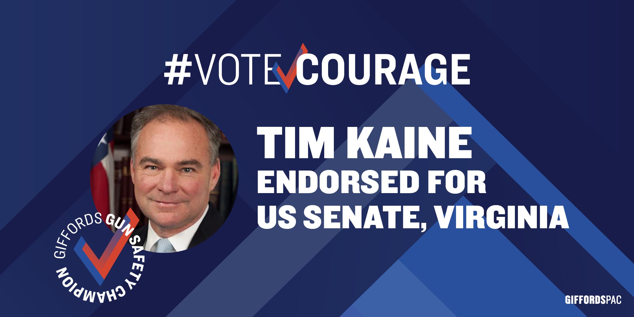 “Senator Kaine acknowledged the devastating toll of our nation’s gun violence crisis, and he is working tirelessly to combat it. His passion, leadership, and dedication as a leading gun safety champion will be critical for our next victories in Congress to save lives and prevent future tragedies. Giffords is proud to endorse Tim Kaine, a leader who has the courage stand up to the corporate gun lobby and who will never stop working to make Virginia communities safer.”