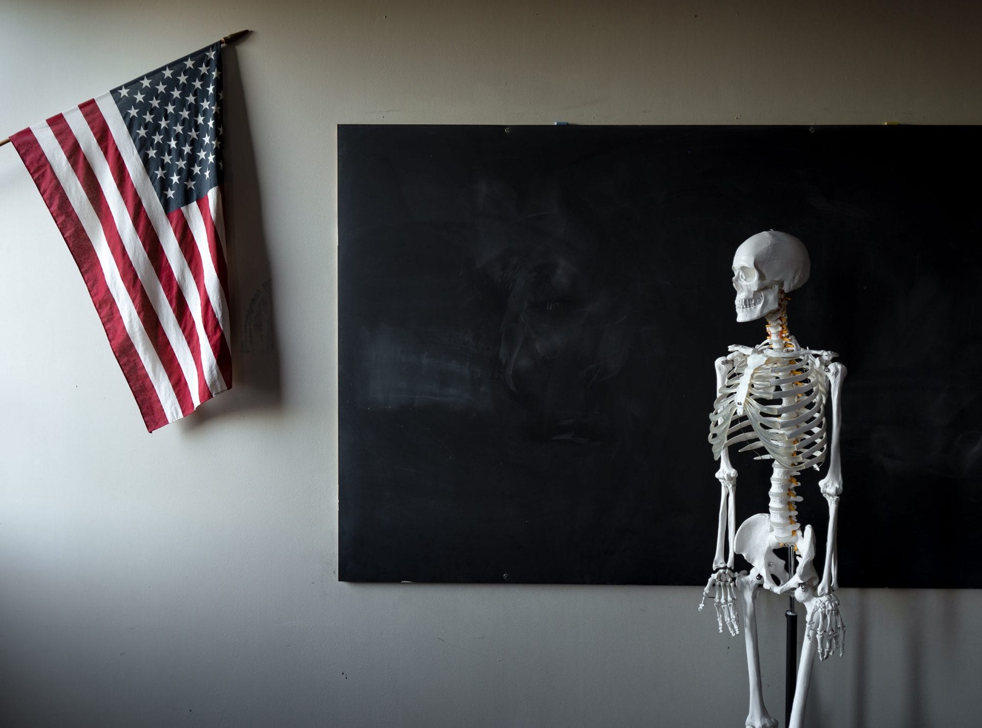 My interest in gun violence prevention has also influenced my artistic practice. In my recent photo series, School Shootings, I use conceptual still life photography to comment on gun violence in American schools. I reconstruct spaces that are suggestive of classroom interiors using familiar objects like stools, desks, and blackboards.